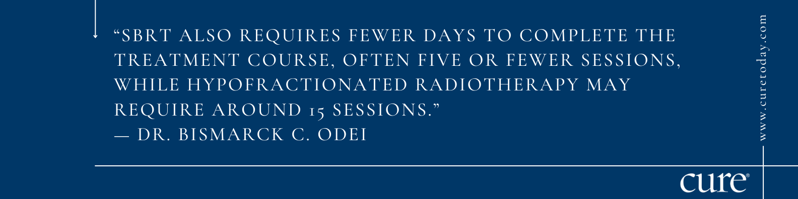 Equally, he defined that hypofractionated CRT additionally delivers excessive doses of radiation, however the length of radiation is shorter than conventional radiation remedy and requires extra periods than SBRT.